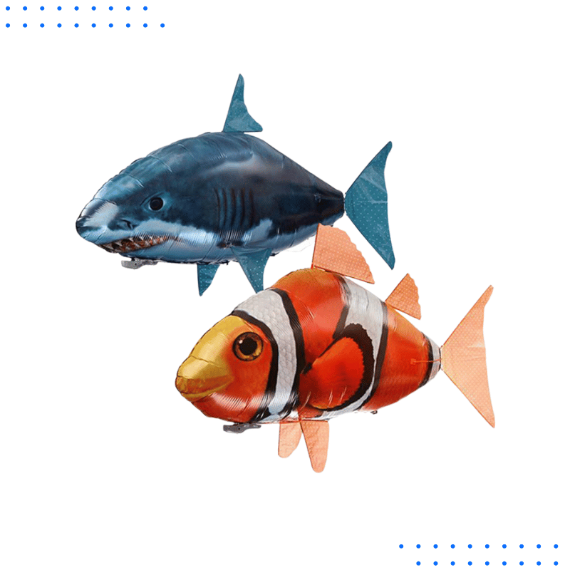 Bring ocean fun indoors with this remote-controlled flying fish! The lightweight design glides smoothly through the air, making it a hit at parties and with kids of all ages.